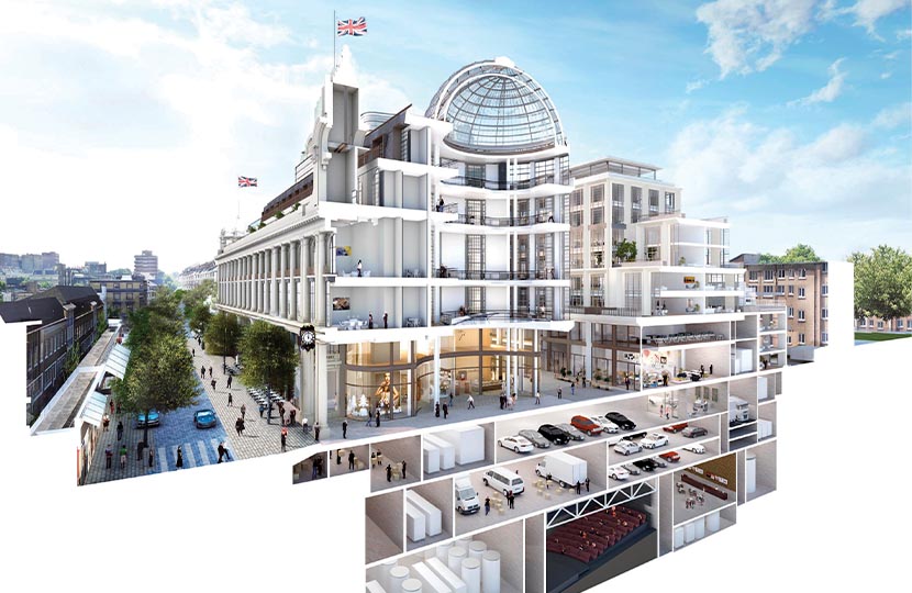A £300m redevelopment to provide a number of high end residential apartments overlooking The Whiteley with approximately 10 new retail and restaurant units fronting Queensway.